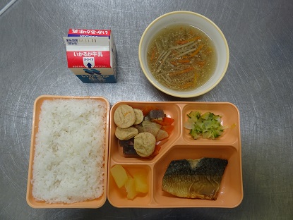 本日のメニュー:鯖のみそ煮、一口がんもと野菜の煮もの、はくさい