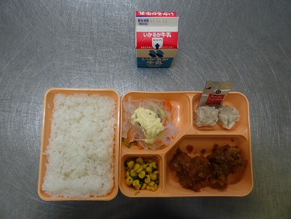 本日のメニュー:油淋鶏、春雨サラダ、シューマイ、チンゲンサイ