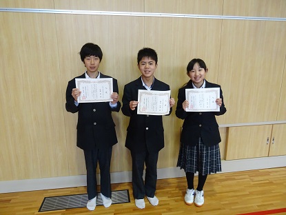 入選した3名には表彰状と副賞が贈られました。応募した生徒全員に、参加賞としてクリアファイルをいただいています。