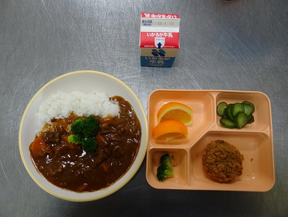 本日のメニュー:ハヤシライス・ブロッコリー、ミンチカツ、きゅう