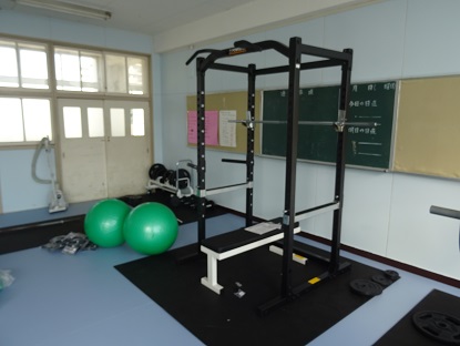 平成29年度校長経営戦略支援予算により南館4階にトレーニングルームを整備しました。トレーニングルームの整備は、単にスポーツや体力向上の取り組みとしてではなく、心と体を一体としてとらえ,学校教育活動全体を通じて,豊かなスポーツライフの基礎を培うことを学校運営の中心に据え、より広がりを持たせることにより、本校の課題である生活指導上の課題の克服、学力向上につなげることを目的としています。
