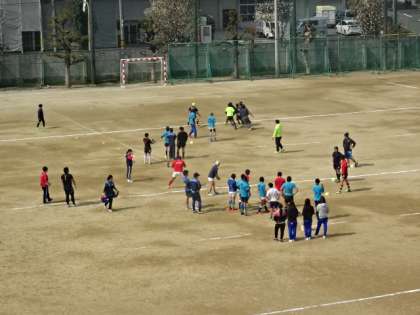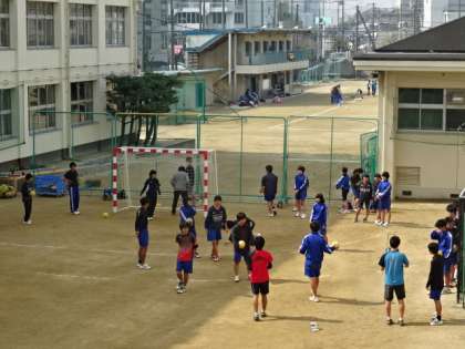写真上段は、他校との合同練習を実施したラグビー部の様子です。下段は中庭で活動しているハンドボール部の様子です。