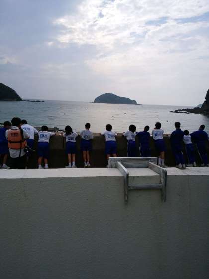 目の前に広がる海と島、そして少し曇った空をスケッチしています。