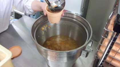 今日の給食から、初めて「スープ」が付きました。お替りをする生徒たちが多くいて、中々、好評でした。次回は3日(木)にみそ汁が付きます。