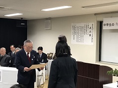 12月5日東淀川納税協会において、平成30年度 中学生「税についての作文」入賞者の表彰式が行われました。