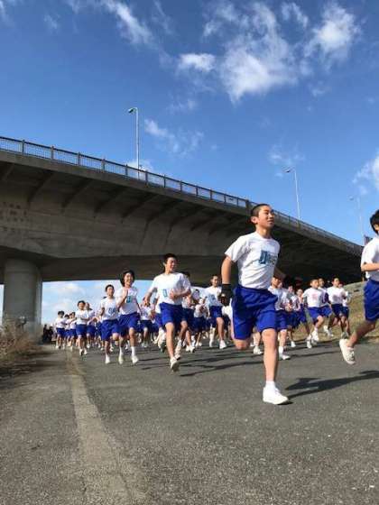 これまで体育の授業では、長距離走に取り組んできました。キリッとした空気の中、その成果をみんな精一杯発揮していました。
