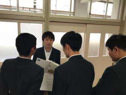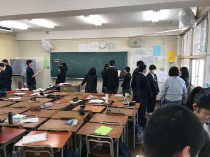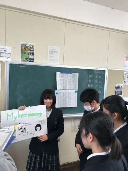 3年生の英語の授業では、各自が中学校生活を振り返り、ポスターを使った英語によるプレゼンテーションをしています。