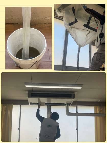 今日はすべての教室のエアコンを、専門業者さんに洗浄してもらっています。
