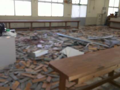 技術室床張り替え工事中