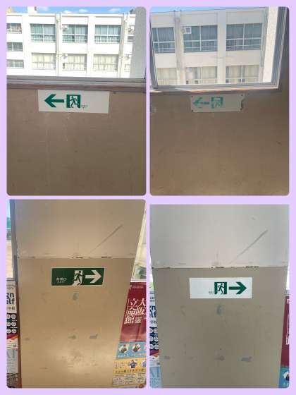 また、見えにくくなっていた避難口誘導標式も張り替えました。