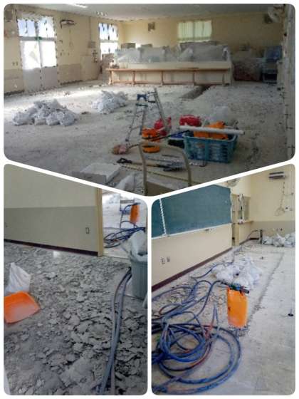 床を張り替えるために、床のコンクリート部分から剥がしていく工程です。