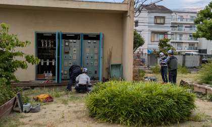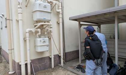 そんな中、学校では業者の方のご協力のもと、停電作業とガス管の調査交換工事が行われました。また、技術室の床張替え工事も引き続き行われています。