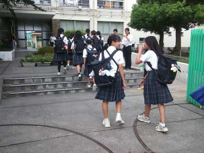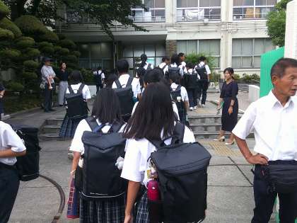 蒸し暑い朝ですが、日焼けした姿や笑顔で登校する生徒が多く見られました。