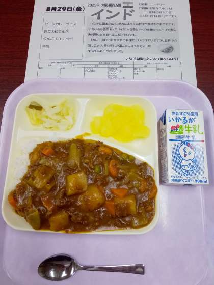 今日の「ビーフカレーライス」には、肉だけでなくジャガイモやニンジン等の野菜もたくさん使われています。