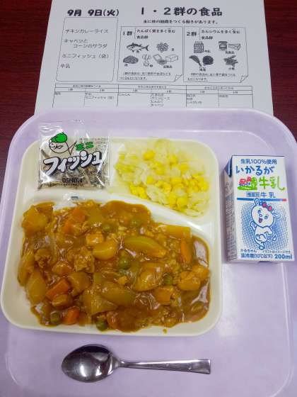 今日の「チキンカレーライス」は大変具だくさんで、鶏肉だけでなく、じゃがいもやにんじんも「これでもか」というぐらい使用されています。