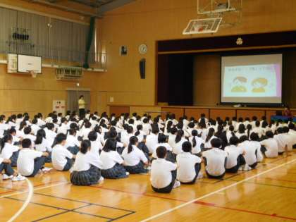 本日5・6時間目、体育館にて「いのちの授業」を行っています。