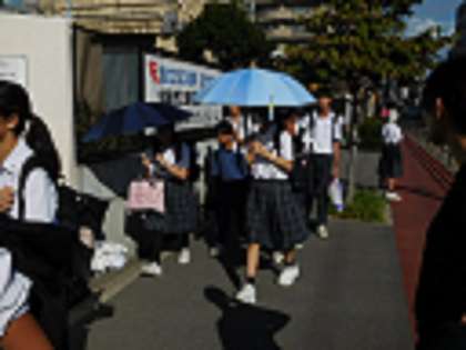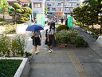今日の登校時間は日差しが強く、日傘をさしている生徒が増えている印象でした。