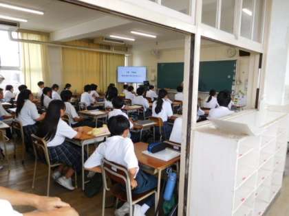 本日の6時間目は、1年5組(数学)と2年3組(社会)で研究授業が行われました。