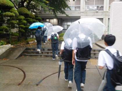 雨は登校時間の間にほとんど止(や)んで、傘を差さずに登校する人もいましたね。