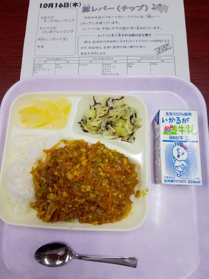 日本では独自の進化を遂げていますので、今日の給食のような、汁気の少ないドライカレーが多く見られますよね。