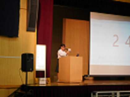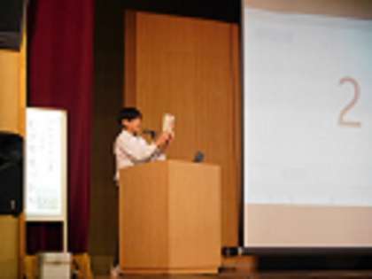 学年トップの2人が、全校生徒の前でそれぞれ1冊の本の内容を紹介してくれました。