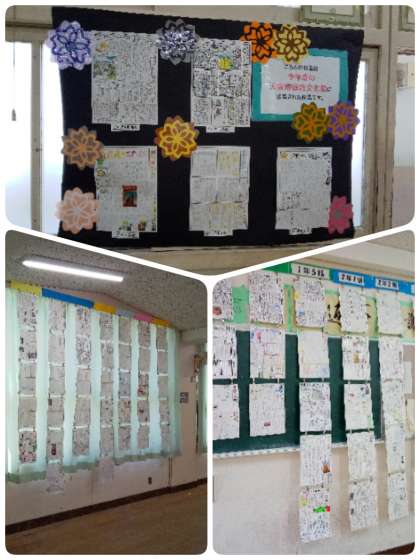 音楽室では、全学年社会科と体育科による作品が展示されました。
