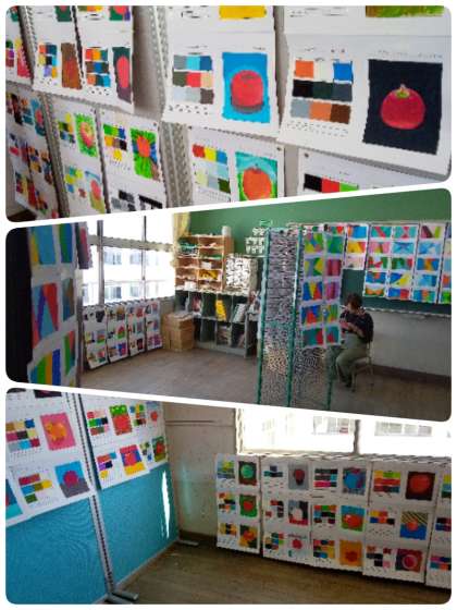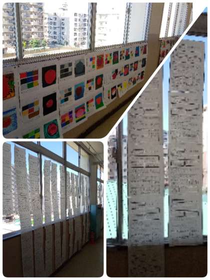 4階美術室と廊下では、1・3年生美術科による作品、2年生による「職業調べ」が展示されました。