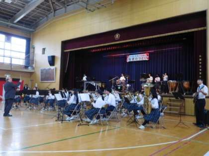 本日午後に行われた「菅原ふれあい敬老のつどい」で、本校吹奏楽部が演奏をさせていただきました。