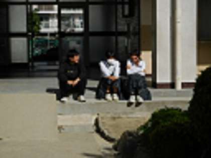 日差しのある場所は「ポカポカ陽気」といった感じで、先生と談笑する生徒もいました。