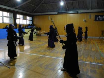 写真はバドミントン部、バレーボール部、剣道部の様子です。