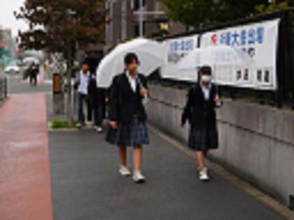 登校時間中に、傘が必要なほどの雨になりました。