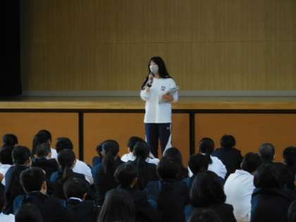 集会では「念」という文字を提示しながら、先生のご経験を交え、「目標があってもなくても、今この瞬間を大切に、丁寧に取り組んでいくことで、時間が経てば必ずプラスとして上乗せされていく」といったお話がありました。