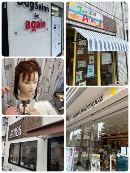 ペットトリマーのお店では、お預かりしたペットのカット後のドライヤー、毛の掃除、また一緒に遊ぶ様子がありました。