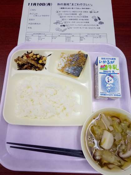 本日の給食メニューは