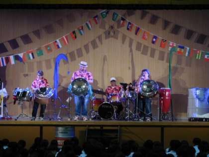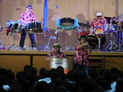 スチールバンドの「想造舎」の方々にお越しいただき、ドラム缶等から作った「スティールパン」によるコンサートを鑑賞させていただきました。