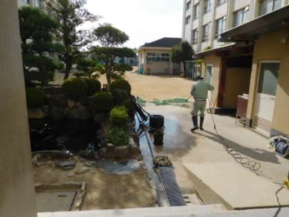 昼休みの後は、管理作業員さんが、鯉の池のろ過装置を洗浄作業をされていました。