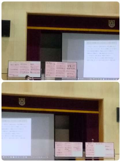 各班で協議した内容をピンクの台紙に書き、全体で共有しました。