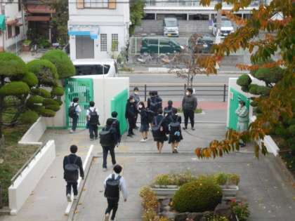 1年生と2年1組につきましては、風邪等による欠席者多数で休業となるため、給食後からの下校となりました。