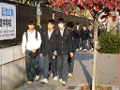 予鈴の少し前に急ぐよう促(うなが)され、走って門を通過する集団が見られました。