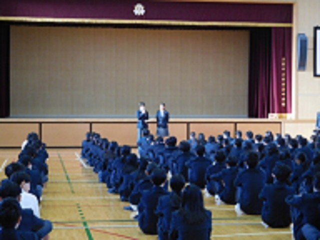 12月12日(金)の朝、体育館にて3年生学年集会を行いました。