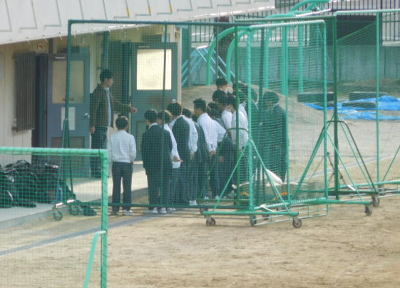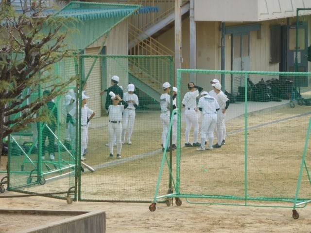 吹奏楽は中庭でパート別練習、野球部はグラウンドで活動、テニス部は掃除を行っていたようです。
