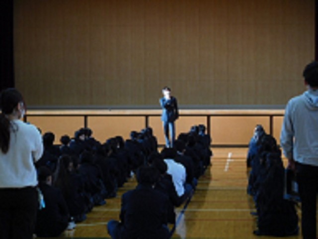 集会では、先生ご自身の高校時代、大学受験の際の経験を交えながら、「先に受験が終わったからと言って浮かれたりすることなく、まだ残っている人たちのためにも最後まで頑張ってほしい」とお話がありました。