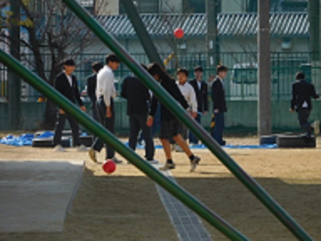 グループごとにボールをひとつずつ使い、それぞれでルールをつくって遊んでいるようです。