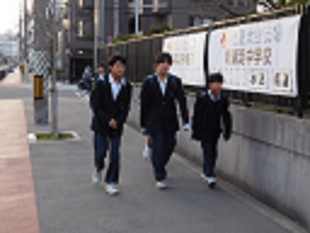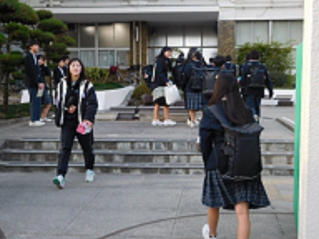 登校時間帯には風が吹き、日差しも弱く寒さが厳しくなっていました。