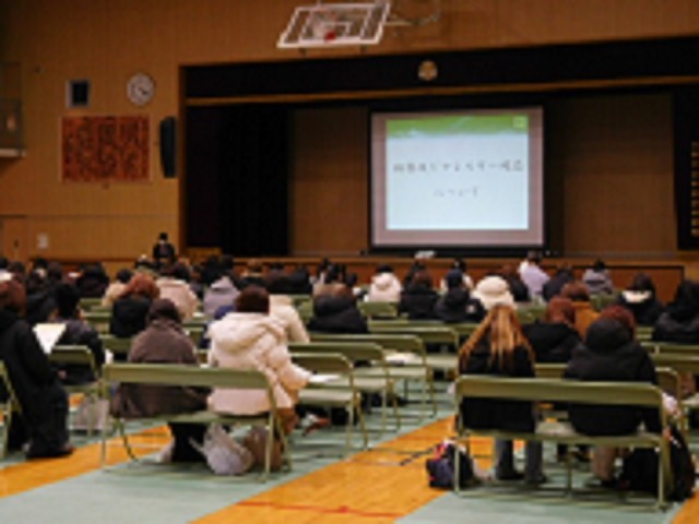 本日15時40分より、体育館にて「新入生保護者説明会」を実施いたしました。