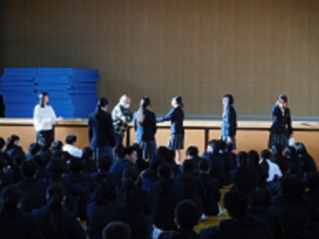 集会では、先生が中学生のころ学年集会で教わった「目配り、気配り、心配り」という言葉について、具体的な例えも入れていただきながら、分かりやすく教えてくださいました。