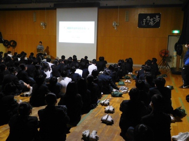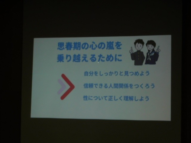 格技室にて実施し、保健室の先生に「成長するからだと心」というテーマで、第2次性徴期のおける体と心変化について授業をしていただきました。