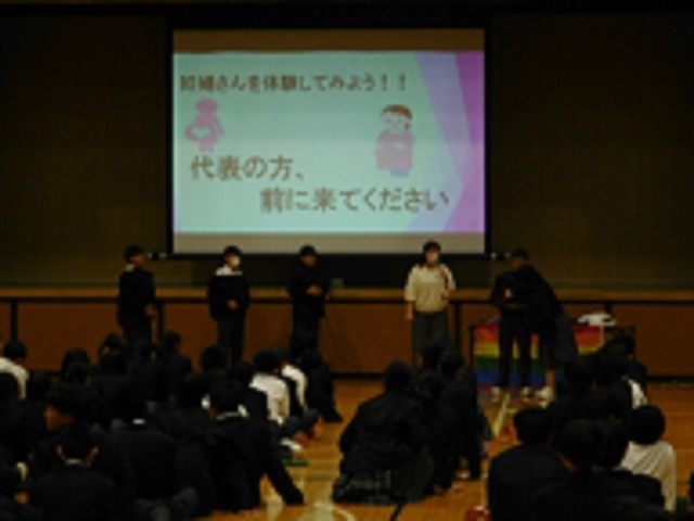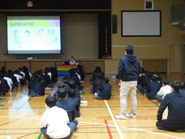 助産師の先生にお越しいただき、生命誕生を中心とした本格的な内容の授業でした。