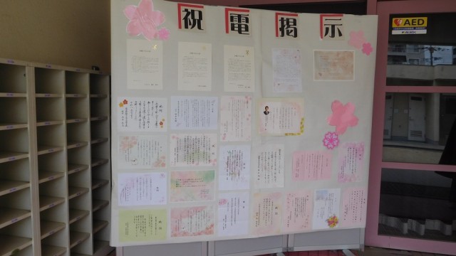 また、式場入り口にはたくさんの方々、学校からも祝電を頂戴いたしました。