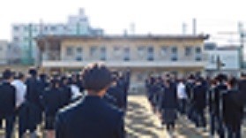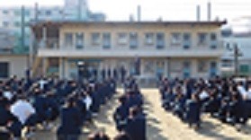 本日は3年生が先週金曜日に卒業式を終えたので、1・2年生のみの全校集会をグラウンドで行いました。